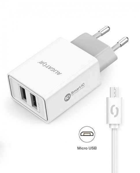 Aligator Chytrá síťová nabíječka 2,4A, 2xUSB, smart IC, bílá, micro USB kabel