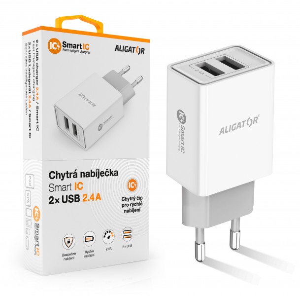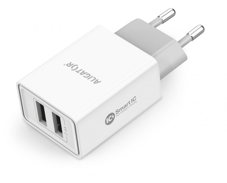 Aligator Chytrá síťová nabíječka 2,4A, 2xUSB, smart IC, bílá
