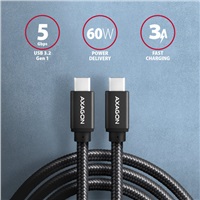 Axagon BUCM3-CM20AB, SPEED kabel USB-C <-> USB-C, 2m, USB 3.2 Gen 1, PD 60W 3A, ALU, oplet, černý
