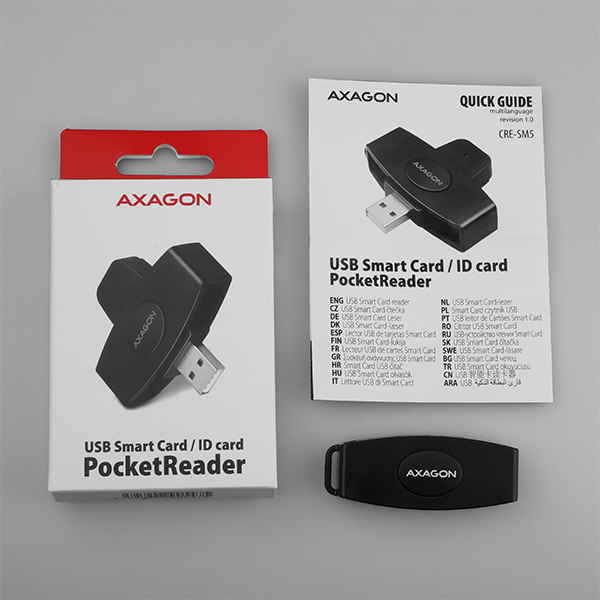 Miniaturní čtečka ID cardAXAGON CRE-SM5 PocketReaders USB 2.0 rozhraním. Card reader podporuje všechny běžné formátykontaktních elektronických občanských průkazů *. Čtečka je plně kompatibilní s aplikacíeObčanka. Kompatibilita se všemi běžnými OS jakoWindows, Linux a Mac OSumožňuje široké využití. Chytrá LED indikace svítí jen krátkou