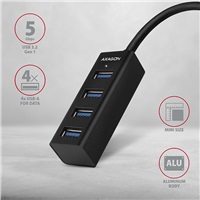 Axagon HUE-M1C, 4x USB 3.2 Gen 1 MINI hub, kovový, kabel USB-C 20cm