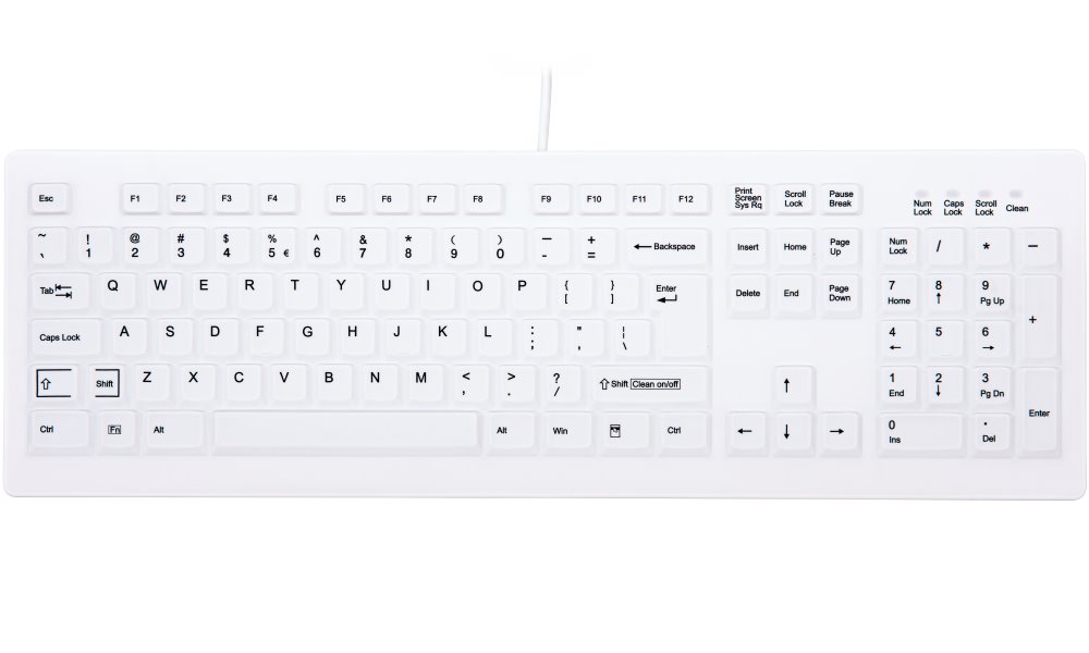Kompaktní drátová klávesnice je navržena tak, aby uživateli poskytla maximální komfort při každodenní práci. Tiché, nízkoprofilové klávesy poskytují efektivní a pohodlné psaní. Díky hygienickému provedení se silikonovým povrchem je vhodná zejména pro použití v nemocnicích, lékařských ordinacích, mikrobiologických laboratořích, jakož i ve farmaceutickém, kosmetickém a potravinářském průmyslu. Lze ji také bezpečně čistit dezinfekčními přípravky a sanitizéry. Připojení k počítači je realizováno skrze USB port.