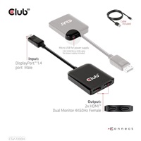 The Club 3D CSV-7200H Multi Stream Transport(MST)Hub DisplayPort™ 1.4 to Dual HDMI 4K60Hz is an integrated solution that allow you to enjoy displaying content onto two different displays simultaneously under MST mode. The Two screens can accommodate displaying same contents in parallel or by simply extending the existing screen, giving a panoramic view of the content which maximizes the user’s visual experience. With its multi-display capabilities, this hub can serve as a convenient and hassle-free portable, alternative solution to the conventional docking station. It’s the perfect solution for host devices which feature DP1.2 /1.4 graphic cards for gaming and commercial applications.