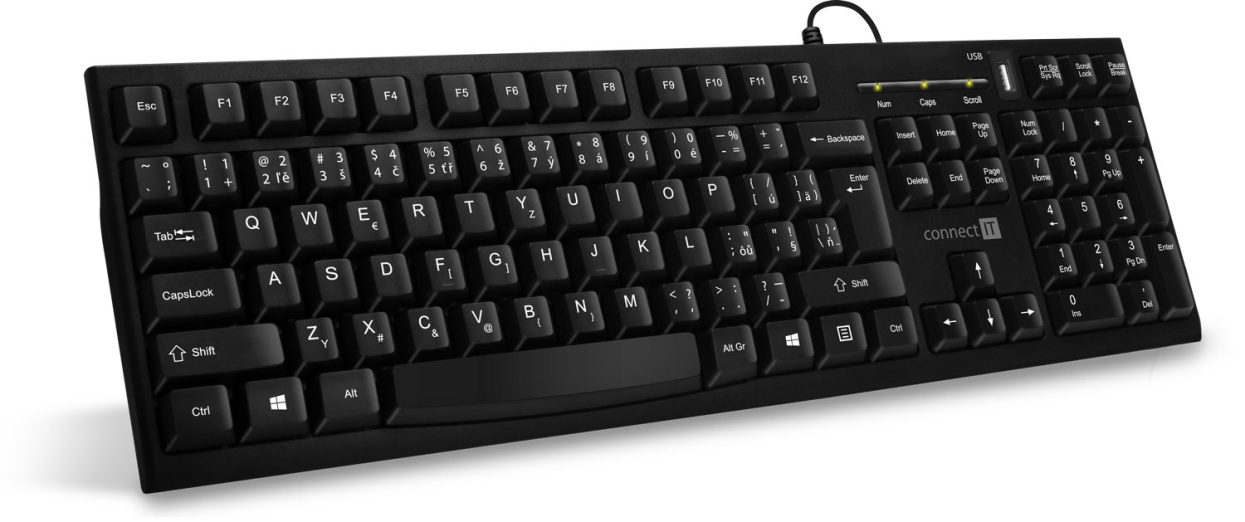 CONNECT IT kancelářská drátová klávesnice s USB hubem, CZ + SK verze, černá