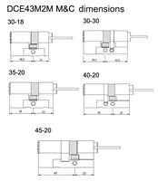 Vnitřní a vnější rozměry vložky lze nastavit pomocí 4 vnitřních modulů a 2 adaptérů do 5 různých rozměrů, které odpovídají nejběžnějším evropským typům dveří. (Vnitřní délka vložky bude vždy kratší, než skutečná vnitřní délka montážního prostoru kvůli užití adaptéru Danalock).