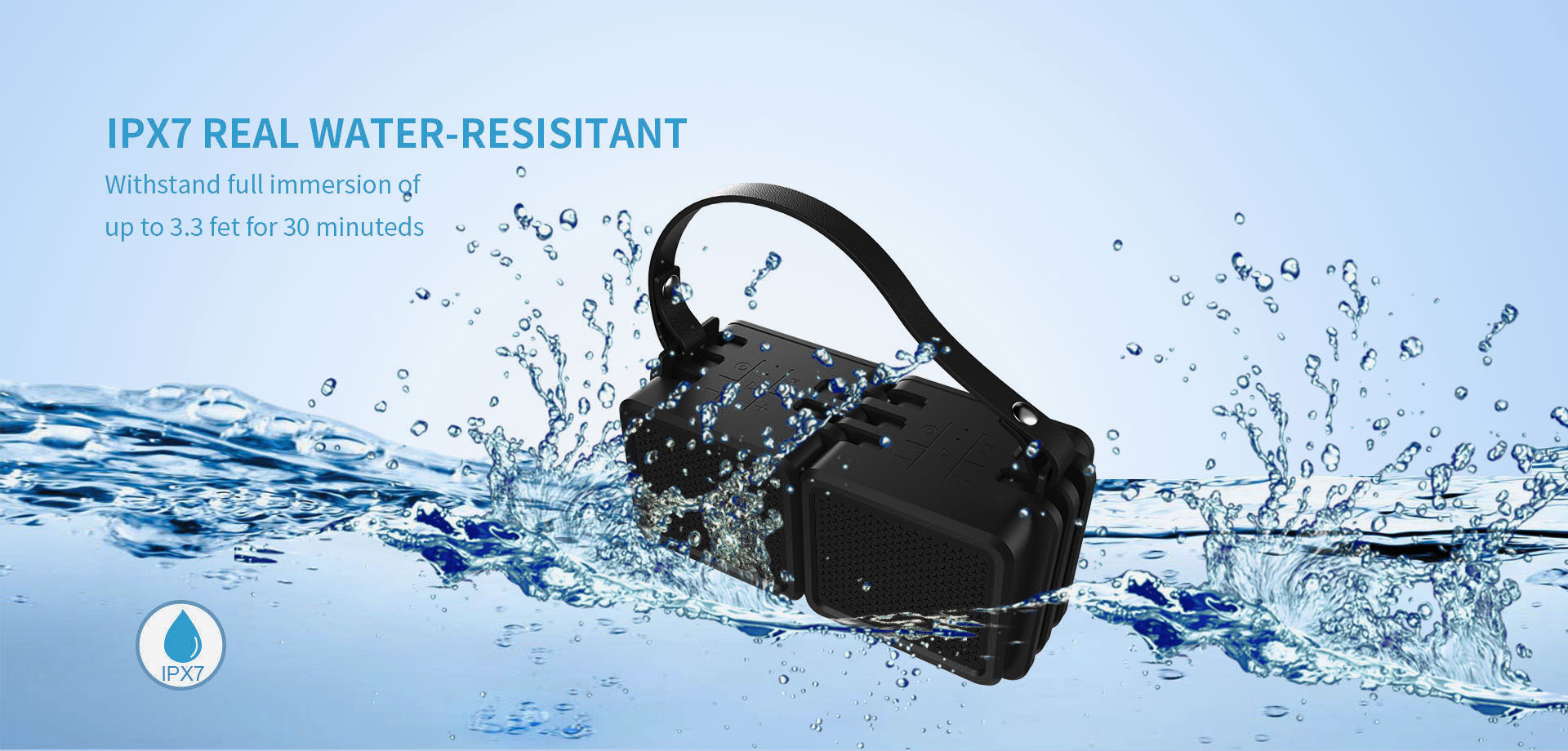 Reproduktor je vodotěsný. Můžete ho vzít na párty k bazénu, na sjíždění řeky na kánoi, nebo do přírody. Voda mu nevadí. Jeho pogumovaný povrch navíc zvyšuje odolnost proti pádu.