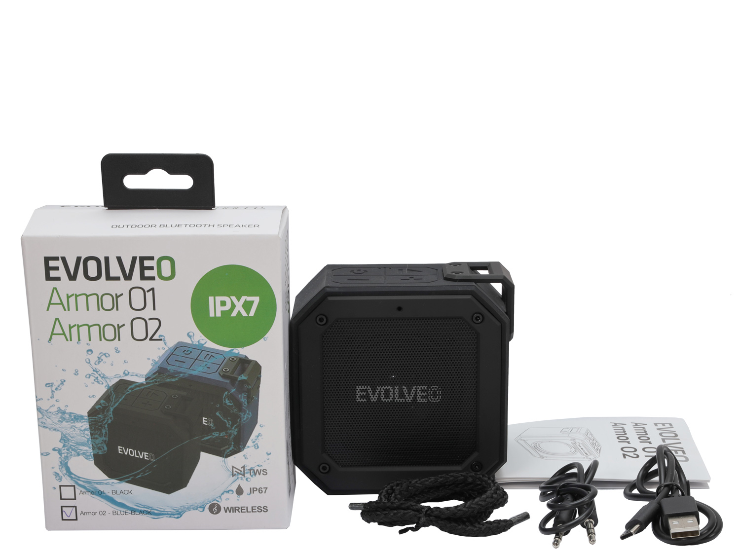 Spotřební elektronika Bezdrátové reproduktory EVOLVEO Armor O1, 12W, IPX7, outdoorový Bluetooth reproduktor, černý