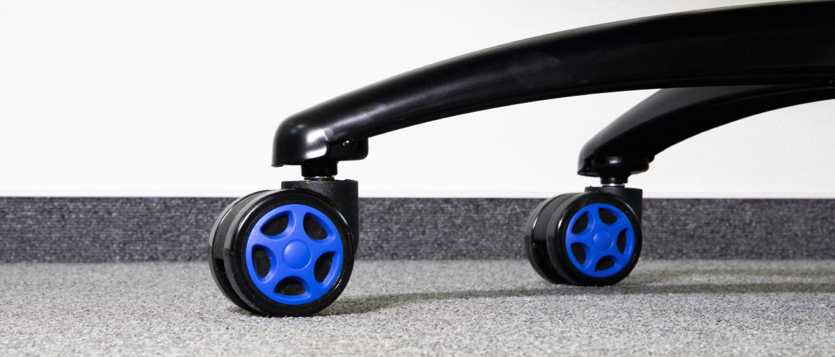 Křeslo disponuje speciálními 60mm kolečky s pogumovaným povrchem, je tedy vhodné jak na tvrdé, tak měkké typy podlah bez obav z poškrábání či jakékoliv poškození.
