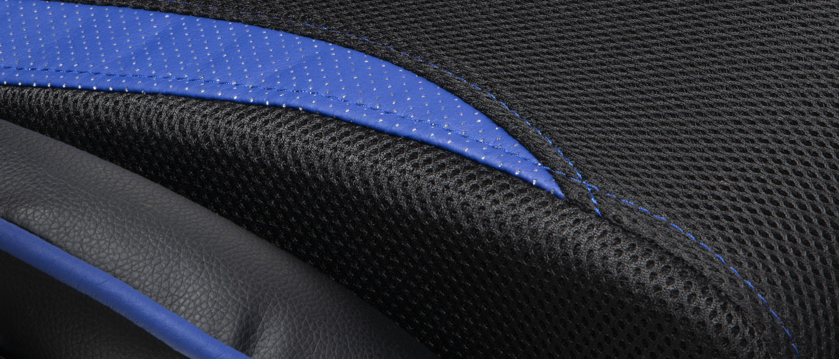 Křeslo disponuje třemi různými typy materiálu. Sedací a zádová opěrná část je potažena speciálním prodyšným materiálem, který pomáhá k lepšímu odvětrávání a pomáhá proti pocení při dlouhém sezení. Boční strany židle jsou potažené šedou prodyšnou PU kůží pro zlepšené odvětrávání. Zbytek židle je pak potažený černou PU kůží.