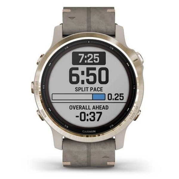 Garmin chytré sportovní GPS hodinky fenix6S PRO Solar, LightGold/Suede Band (MAP/Music)