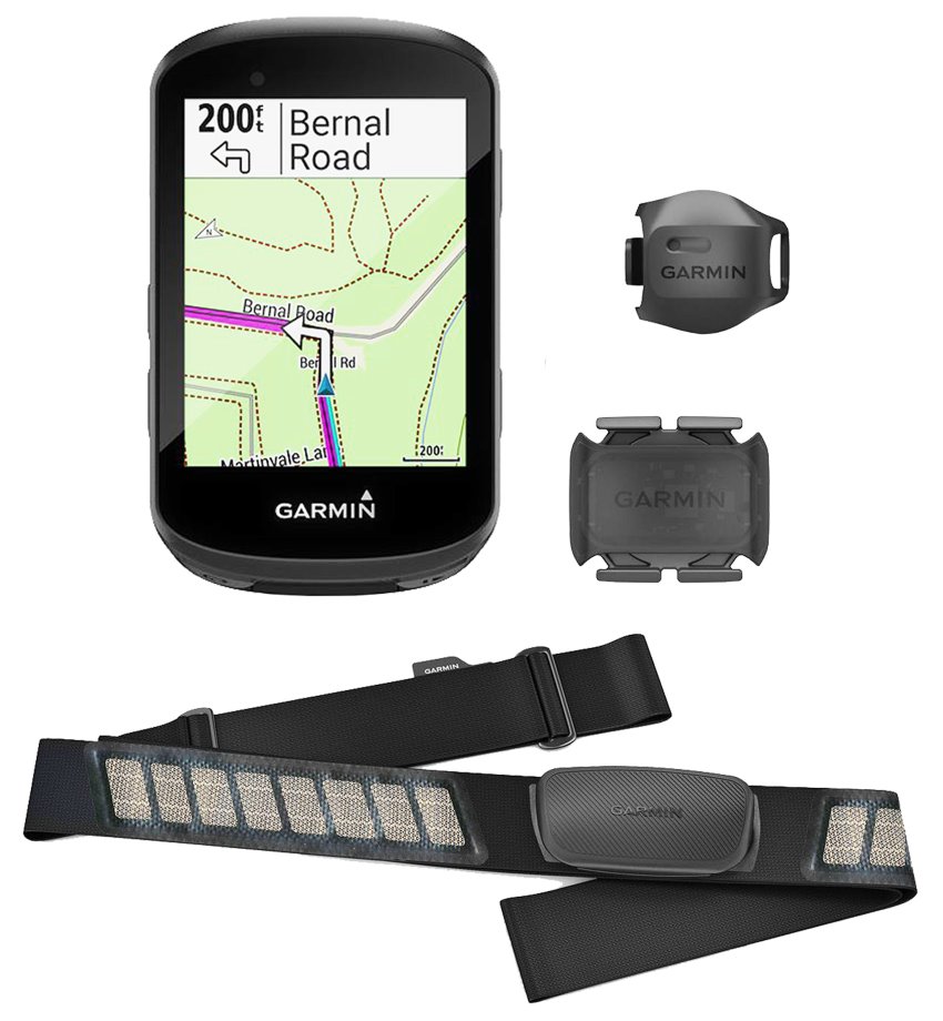 Součástí balení je předsazený držák na řídítka, základní držák na řídítka/představec, nabíjecí kabel USB, poutko a snímače srdečního tepu, kadence a rychlosti.