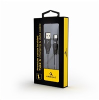 Gembird Premium cotton braided Type-C USB charging and data cable,1m,black/white