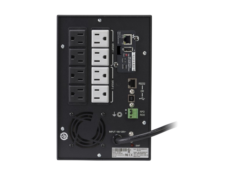 Mezi standardní funkce patří intuitivní displej na předním panelu, rozšířená správa baterie (EBM), síťová přechodová ochrana a sériové a USB porty pro výměnu dat s hostitelským počítačem.