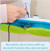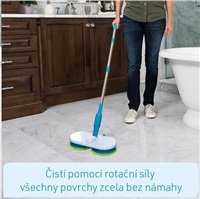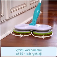 Dvě hlavy mopu vyčistí vaši podlahu s dvojnásobným výkonem a až 100 otáčkami za minutu! Speciální opakovaně použitelné návleky z mikrovlákna sbírají nečistoty pomocí tisících vláken a bezpečně ji zafixují!