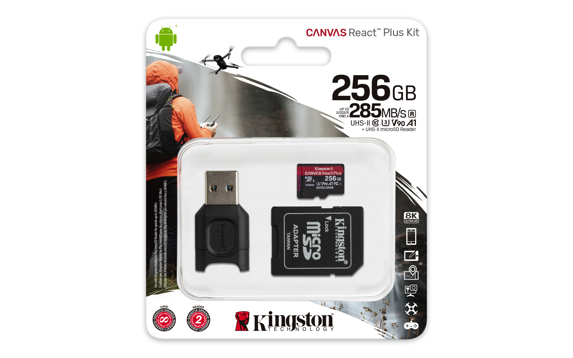 Kingston paměťová karta 256GB microSDXC React Plus SDCR2 w/Adapter + MLPM Reader