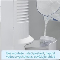 Chladí, osvěžuje a zvlhčuje pouze čistou vodou - bez jakýchkoliv chemikálií