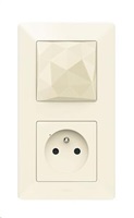 Valena Life with Netatmo startovací kit - nutný pro každou instalaci, obsahuje spínanou zásuvku 230V/16A s měřením spotřeby el. energie (lze ji ovládat bezdrátovými spínači osvětlení, mobilem nebo hlasem, přístroj lze přidat do scénářů nebo časových programů), komunikační bránu a ovládač scénářů "doma/mimo domov", instaluje se pouze do jediné instalační krabice místo klasické zásuvky - barva Béžová, dodáván s rámečkem v barvě Béžová