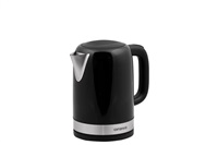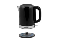 Automatická varná konvice, černá lesklá barva, Objem vody: max. 1,7 l, Napájení: 220 - 240V ~ 50/60 Hz, 1 850 - 2 200W, VDE zástrčka, Varná nádoba na odnímatelném 360 ° otočném podstavci, Topné těleso překryté deskou z ušlechtilé oceli, automatické vypnutí, Ochrana před ohřevem bez vody, ukazatel napájení, S indikátorem hladiny vody