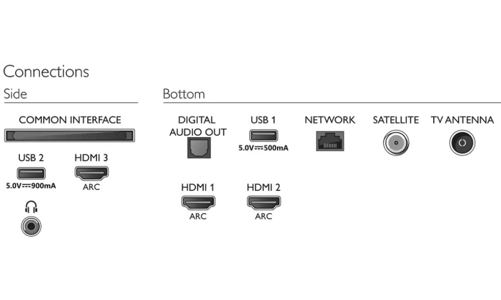 Rozhraní: Wi-Fi, 3 x HDMI, 2 x USB 2.0, 1 x RJ-45, 1 x CI+ slot, 1 x LNB vstup, 1 x RF vstup, 1 x sluchátkový výstup, 1 x optický audio výstup