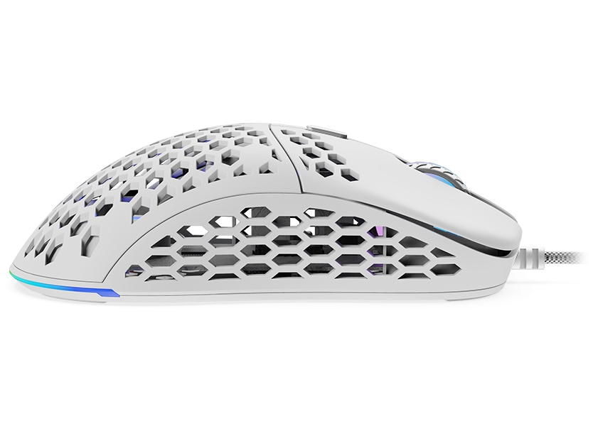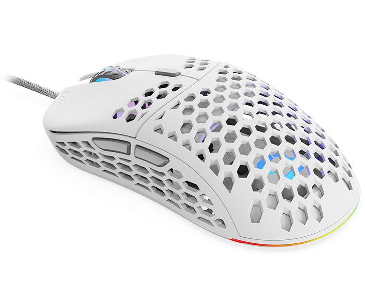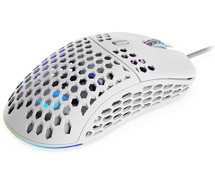 Ultralehká herní myš disponující 6 programovatelnými tlačítky a vysoce přesným optickým senzorem Pixart PMW3360 s rozlišením až 12000 dpi. Kryt v designu plástve snižuje celkovou hmotnost, zlepšuje odvod tepla, a tím zajistí i pevnější uchopení myši. Herní design poté doplňuje adresovatelné RGB podsvícení. Kvalitní spínače Omron vydrží více než 50 milionů kliknutí. Připojení je realizováno skrze opletený USB kabel o délce 1,8 m.