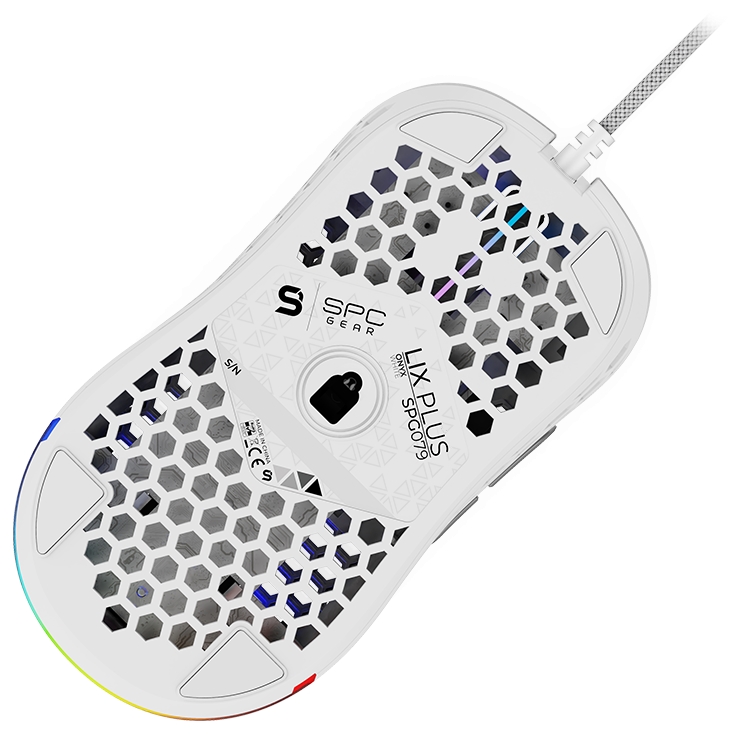 SPC Gear herní myš LIX+ onyx white / drátová / optická / PMW3360/800-12000dpi / 1000Hz/6 tlačítek / 59g /RGB/ USB / bílá