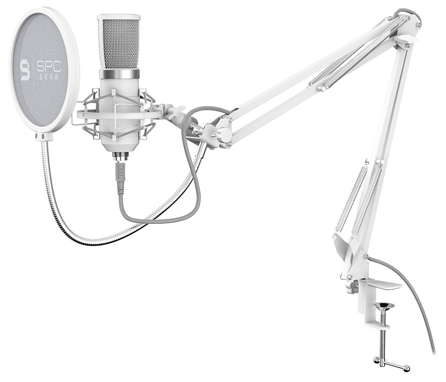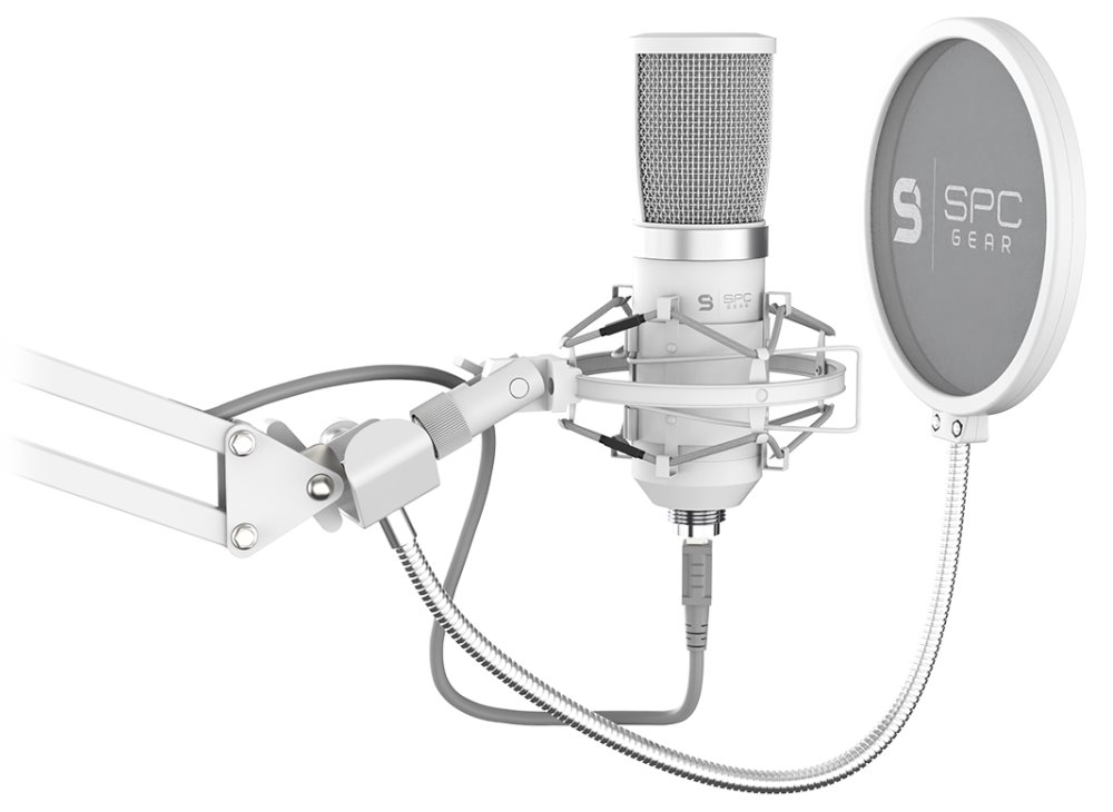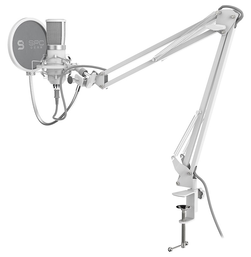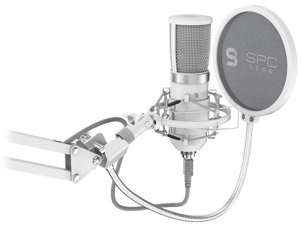 SPC Gear mikrofon SM950 Onyx White Streaming microphone / USB / polohovatelné rameno / pop filtr / bílý