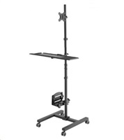 Stojan na PC s držákem monitoru a policí na klávesnici a myš - mobilní pojízdná PC pracovna -Fiber Mounts AX793