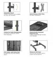 Potřebujete si vytvořit pojízdné PC pracoviště za co nejlepší cenu? Máme pro Vás kompletní řešení za bezkonkurenční cenu - pojízdný stojan s držákem na PC, držákem na monitor a policí na klávesnici. Vše je přitom ergonomické - nastavitelná výška, náklon a natočení monitoru, nastavitelná výška klávesnice a myši, výškové nastavení držáku PC, pojezdová kolečka s aretací. Barevné provedení černé, záruka 3 roky.