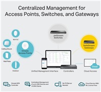 - Centralized management for up to 500 Omada access points, JetStream switches, and SafeStream routers.