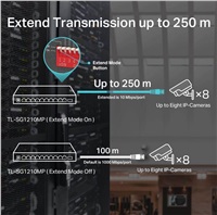 Up to 250 m data and power transmission range under Extend Mode**