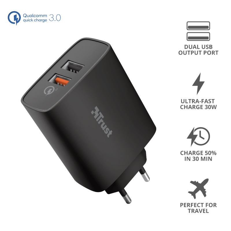 Trust QMAX USB A+A WALL CHARGER QC3 30W