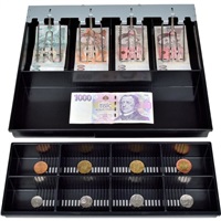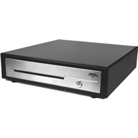Virtuos pokladní zásuvka C430D - s kabelem, kovové držáky, nerez panel, 9-24V, černá