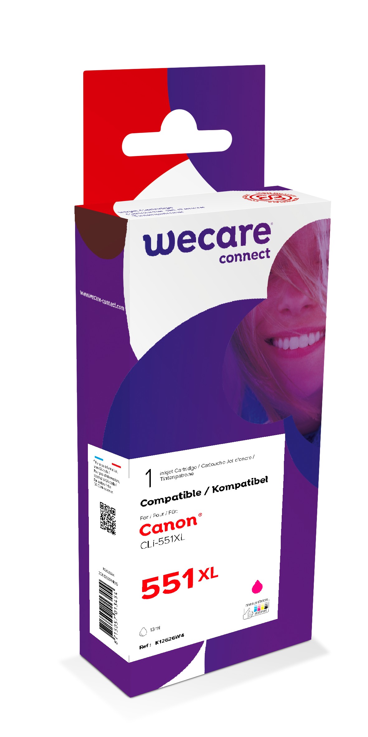 WECARE ink pro CANON CLi-551XLM,červená/magenta